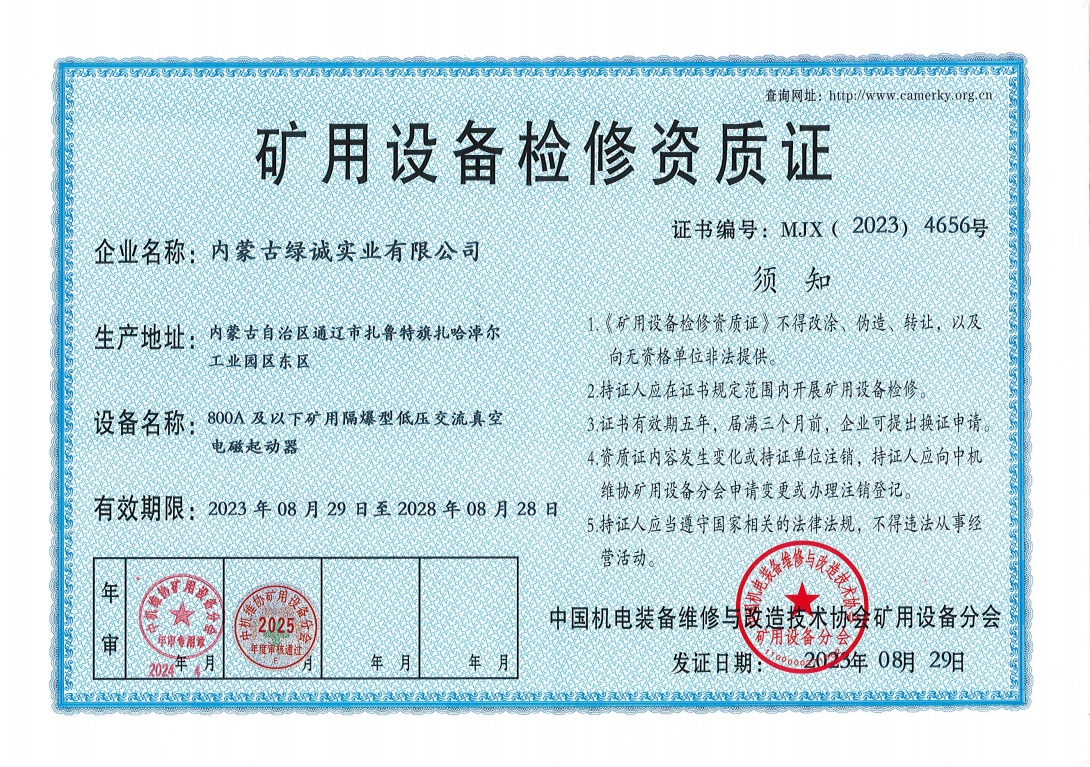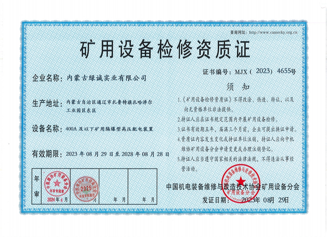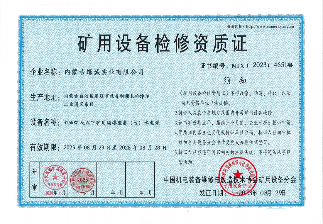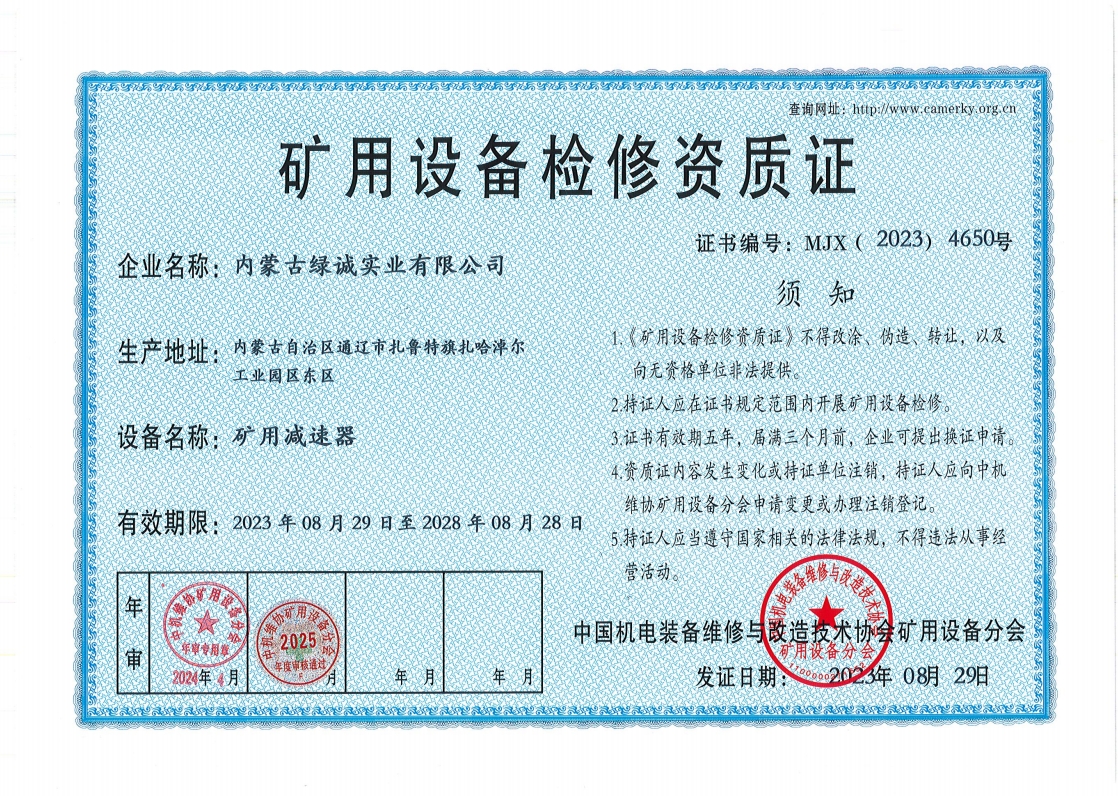 2018年我公司通過中國(guó)機(jī)電裝備維修與改造技術(shù)協(xié)會(huì)礦用設(shè)備分會(huì)審核并取得了9項(xiàng)礦用設(shè)備檢修資質(zhì)證書。公司本著“誠(chéng)信為本 質(zhì)量為先 全心全意為客戶 ”的服務(wù)理念,圓滿完成各個(gè)廠礦的機(jī)械維修及配套服務(wù),期待與您共同合作。